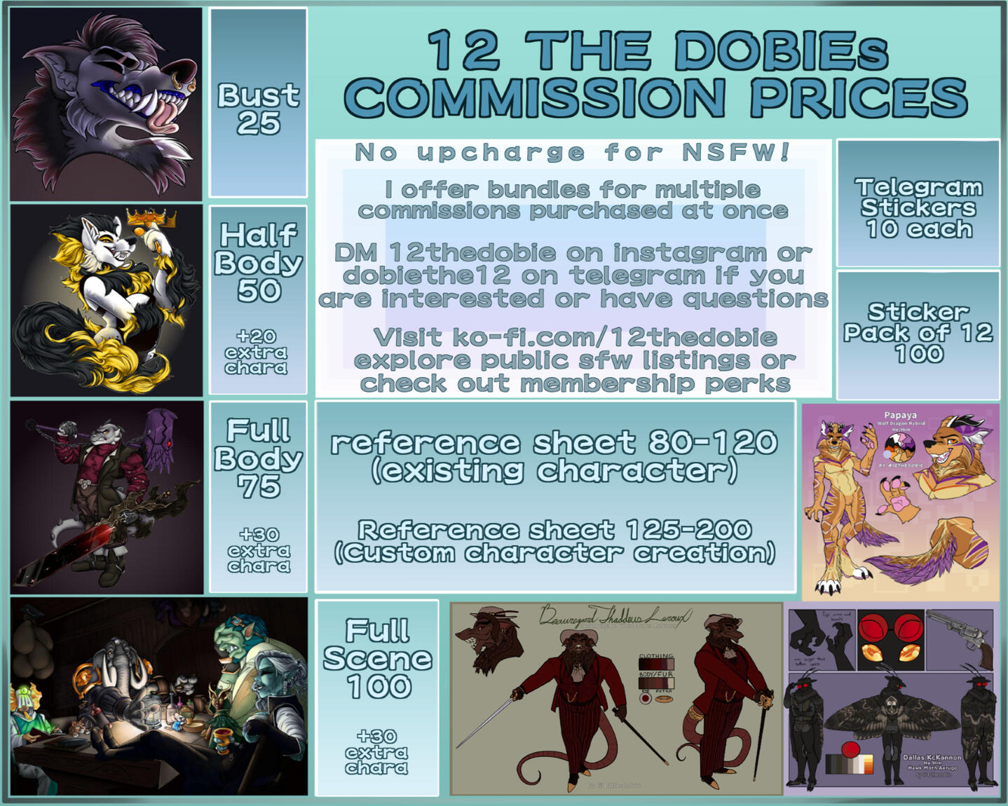 Bundles, Discounts and Payment Plans;-Payment plans and bundles are available for reasonable circumstances and will be structured case by case.Getting multiple commissions of a similar kind or multiple adding up to a certain amount may land you a bundle offer.There are many combinations, so ask if yours may count.If your are a Ko-Fi member with applicable discounts, I will try my best to honor your discount if we have to go through PayPal instead for whatever reason.Payment plans are available for